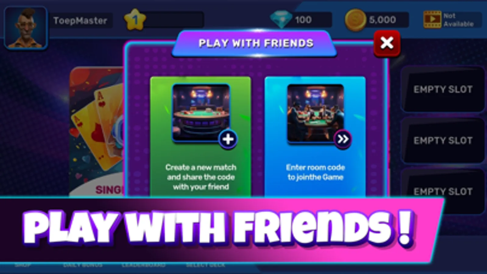 Dus waar wacht je nog op? Duik in de opwinding van Toep Master en word de ultieme kaartmeester! Of je nu speelt met vrienden aan je zijde of de uitdaging aangaat tegen onbekende spelers van over de hele wereld, Toep Master biedt eindeloos plezier en avontuur voor alle leeftijden.