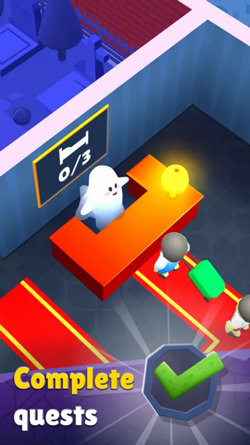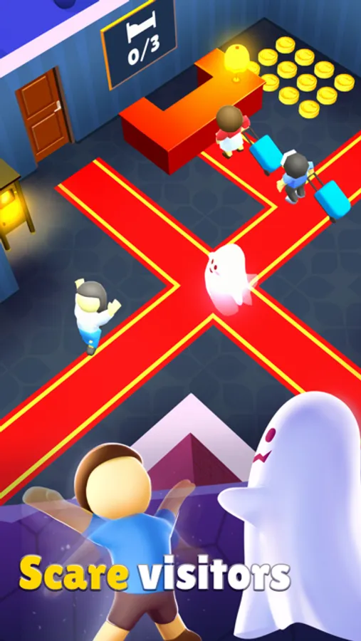 Start your Ghost Manager career from scratch: satisfy your visitors' need to be scared. Guide the guests to the room, shake the curtains, walk through the walls, scare the visitor's strange sounds from furniture or silhouettes on mirrors. As your spectral reputation grows, discover new staff and expand your creepy services to become a real manager of the Hotel of Frights.