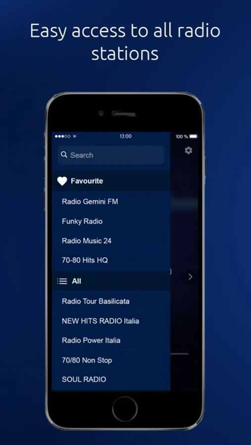 You can easily mark your favourite Italian radios among all the others and switch between favourites even faster. Moreover, you can find here information about the currently playing song, so you will never miss its name again.