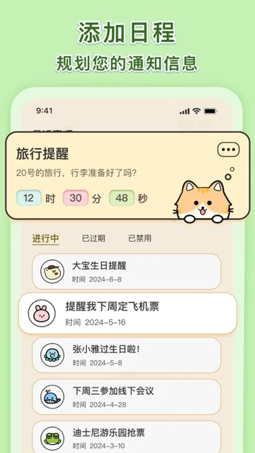 - 便捷的通知管理:轻松添加和管理您的提醒。