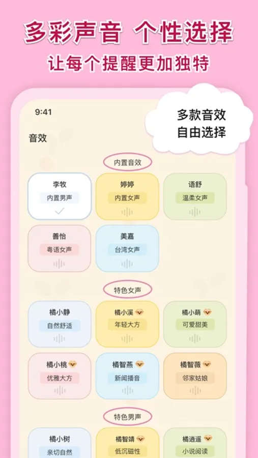 只需简单几步设置,您就能创建个性化的语音通知。无论是提醒重要会议、生日祝福,还是日常的喝水休息,【语音通知】都能及时为您发送提醒。选择您喜爱的声音,让每一次提醒都充满个性和温馨。让“语音通知”成为您高效管理时间的贴心小助手,同时为您的生活带来更多乐趣!