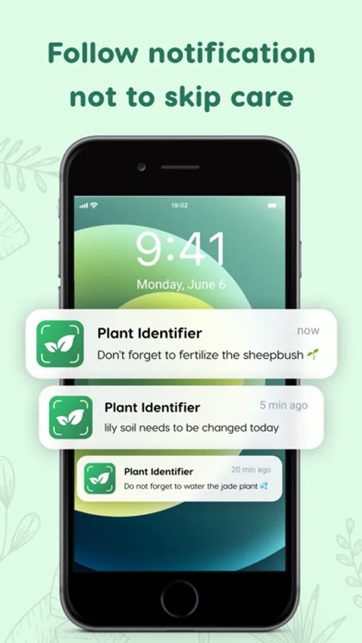 Easy, step-by-step care instructions on how to care for your green friends. Get notified when it's time to water, fertilize, mist, clean, and repot. The Plant Identifier app can even track how much sunlight your plant is getting with light meter.