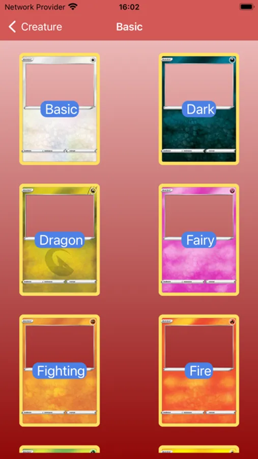 - All types of creatures: You will be able to create cards for all types of them: Fire, Fighting, Water, Electric, etc.