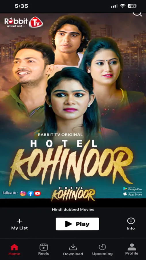 RABBIT TV is a video entertainment platform that helps customers to watch wide variety of contents including web series, mini movies, movies and RABBIT TV Original and exlusives cotents in different genre and in different languages including indian and regional languages.