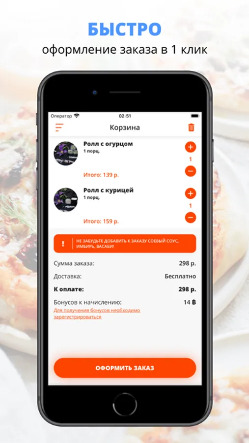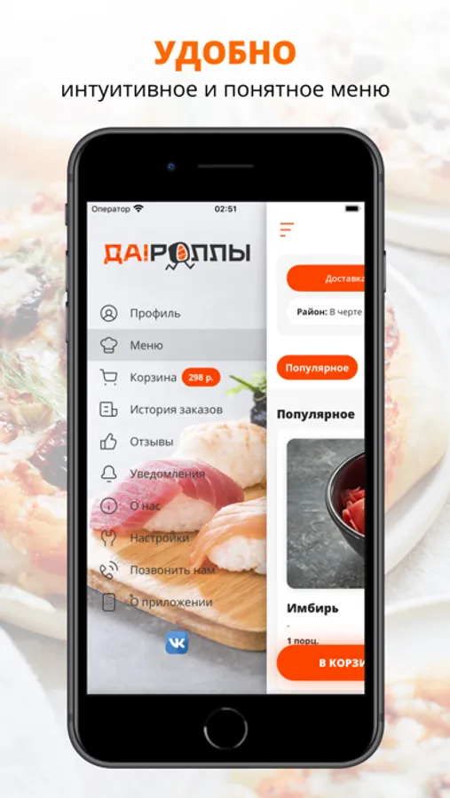 Скачивайте наше приложение, оформляйте заказ и наслаждайтесь любимой едой, где бы Вы ни были! Приятного аппетита!