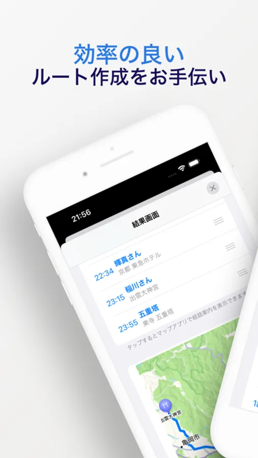「効率ナビ」は、複数の目的地を訪れる際に、最も効率的な順序で経由するルートを提示します。