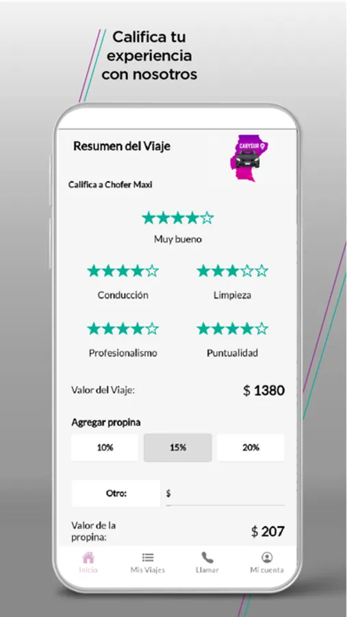 - Califica tu viaje y si lo deseas deja propina al chofer.