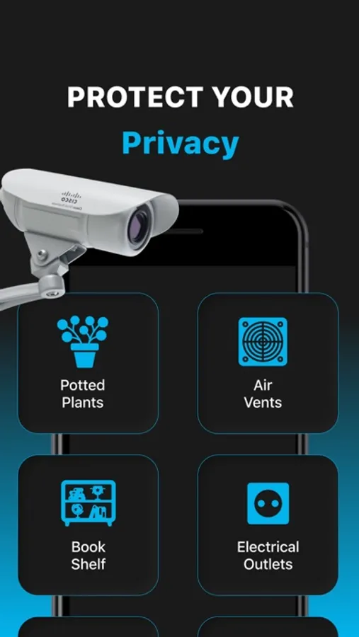 Camera Detection Mode: Initiate environmental scans to locate hidden cameras within your immediate surroundings.