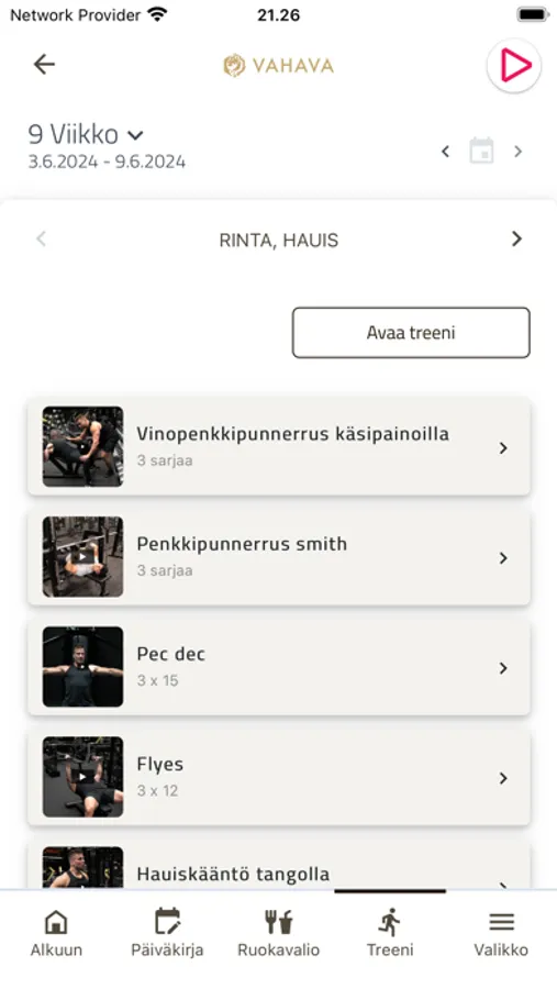 Tämä on uusi Vahava sovellus! Vahavalla haluttiin lähteä tekemään valmennusta ehkä bisneksen kannalta hitaammalla, mutta varmasti pitkässä juoksussa palkitsevammalla tavalla. Lähtökohtana on tehdä muutoksia, jotka pysyvät. Uudesta Vahava sovelluksesta löydät vuosien ammattitaidolla viilatut treeniohjeet suoritustekniikkavideoineen ja ruokavaliot reseptiohjeineen, joiden avulla voit oppia tavat, jotka ovat mahdollista pitää vaikka loppuelämän. Sovelluksen avulla seuraat helposti kehittymistäsi ja onnistumisiasi. Mikä parasta, nyt kaikki tämä kulkee samassa paikassa aina mukanasi!