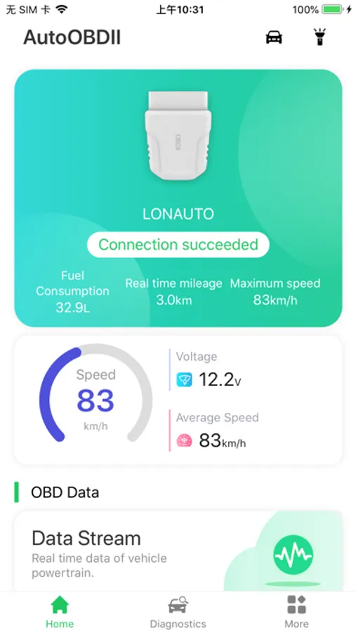 AutoOBDII is a car diagnostic and monitoring application,support English,Español,Русский,Deutsch,Français,日本語,中文,Italiano,한국어,Português. Through phone, use Bluetooth to communicate with the vehicle terminal to complete fault diagnosis and driving assistance functions. It has automobile detection and analysis functions such as fault code reading and clearing, instrument panel, performance test, and travel analysis. It also supports high-speed data transmission and has the advantages of low power consumption and ultra-power saving.