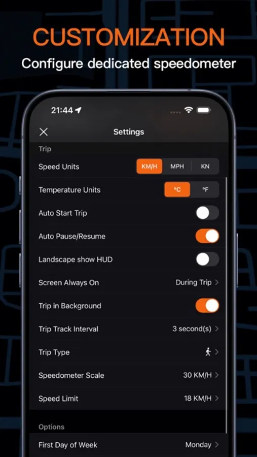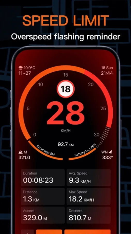 Customization is also one of our key features. Depending on the trip mode, you can freely set the dial scale and speed limits on the speedometer. When you exceed the speed limit, the app will alert you in a highly noticeable way, helping you stay within the designated speed.