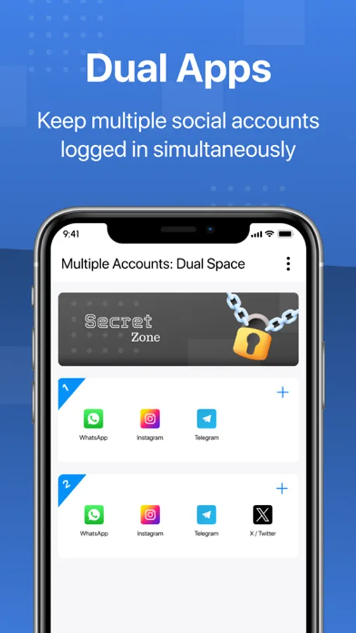 Choose Clone Apps - Parallel Space! As one of the most downloaded, best rated cloning apps on the market, we help millions of users run dual or multiple accounts across top social apps