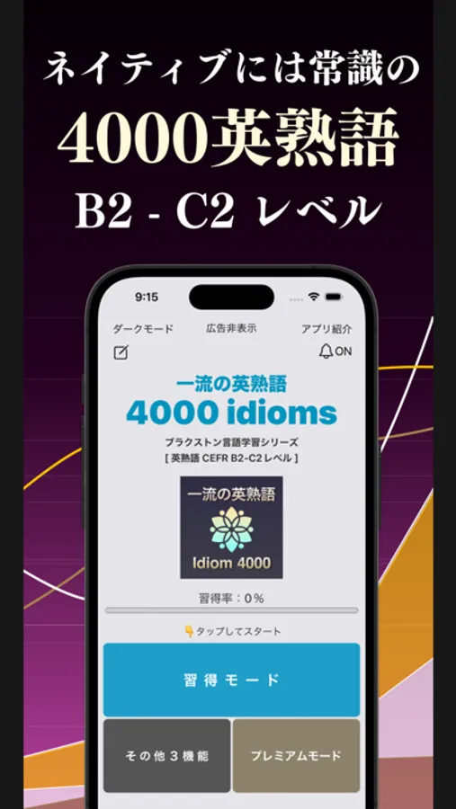 4000熟語を学習することで、網羅的に中上級(CEFR B2)〜ネイティブレベル(CEFR C2)の英熟語が習得できるように設計しています。