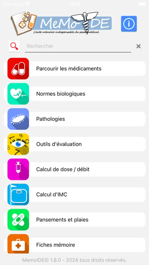 MemoIDE est une application qui vous apporte de manière rapide tout ce que vous devez savoir concernant vos traitement, bilans et autres pratiques médicales avec: