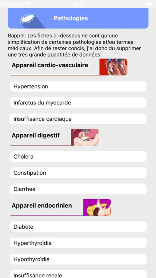- des informations concernant l'anatomie du corps humain avec des fiches synthétiques