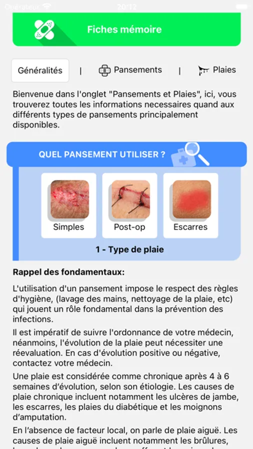 - des informations concrètes concernant les pansements et leur spécificités