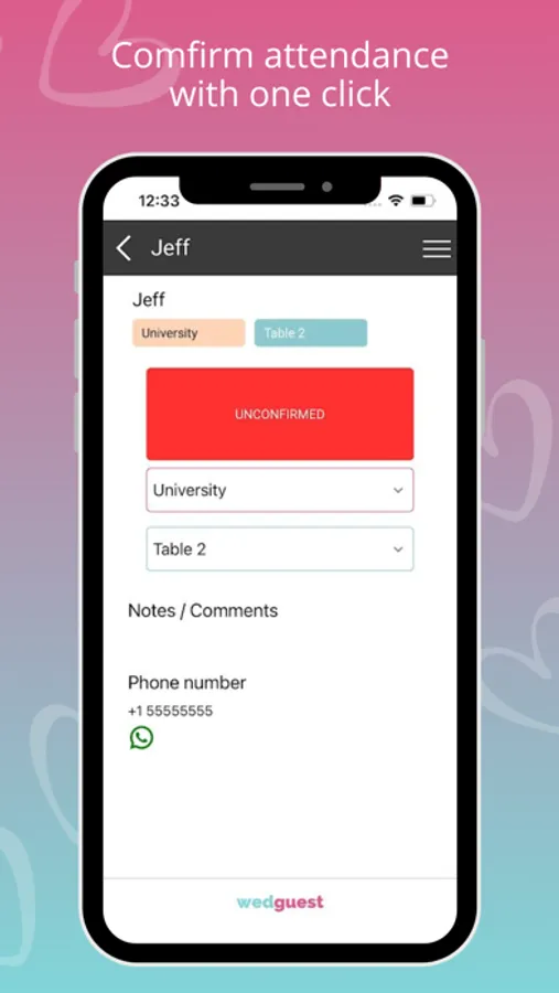 - Confirm the attendance of your wedding guests with just 1 click.