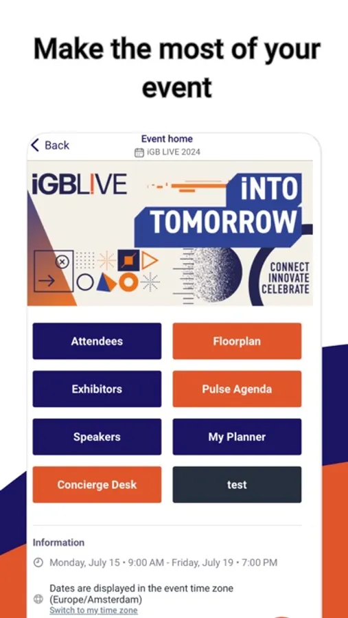 The iGB L!VE App is designed to put the entire event experience in your hands—efficiently, intuitively, and in real-time.