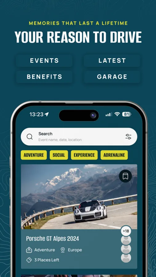 • Events & Tours: Easily browse and book from over 150 events, from thrilling track days to breathtaking European tours.