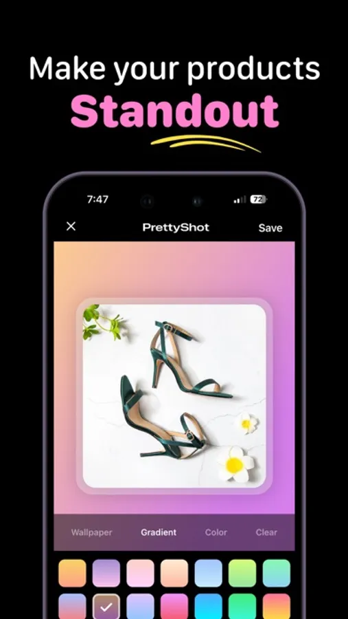 PrettyShot packs over 70+ delicious wallpaper backgrounds, along with carefully curated colors and gradients that will make your screenshots/photos pop like never before!