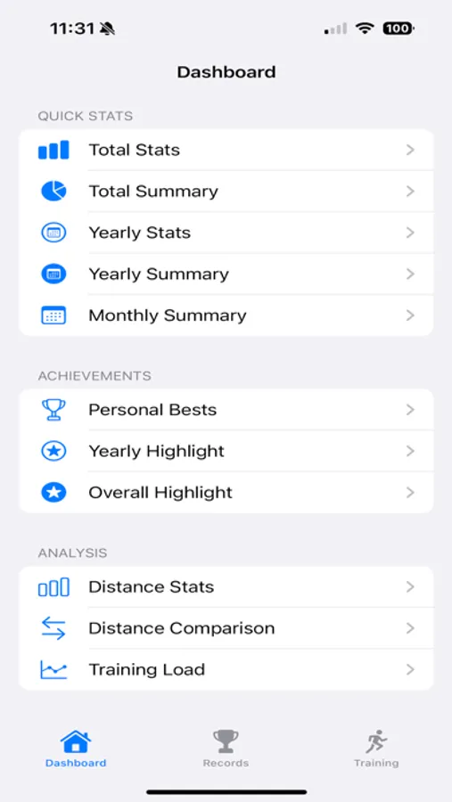 This app processes all your workouts within Apple Health. Whether you use an Apple Watch or another service like Strava or Garmin, as long as you sync your data with Apple Health, this app provides valuable insights. Everything is processed locally, on your device.