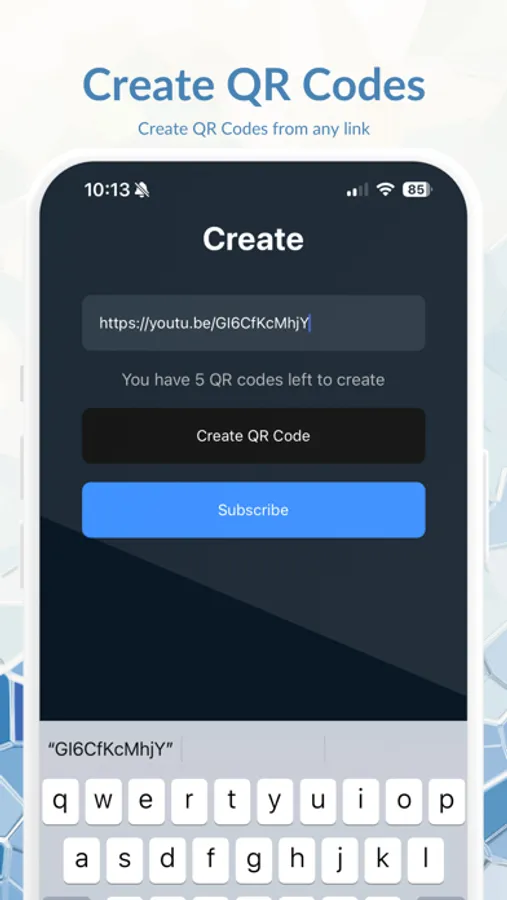You can subscribe to Scan QR Code Now to get access to premium features, like unlimited scans, code creation, and more.