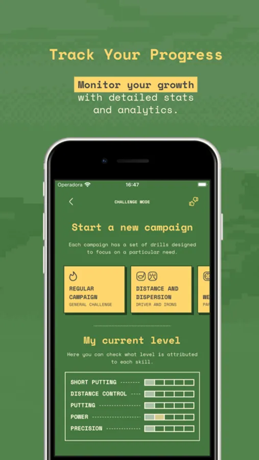Benefit from expert strategies designed by renowned coaches like Jon Sherman and Ted Scott, and explore game modes like Bullseye to master your distance control, and Career Mode to guide you through each skill of your game with video game-like fun, custom drills, and personalized goals—so you can evolve as a player while enjoying the process.