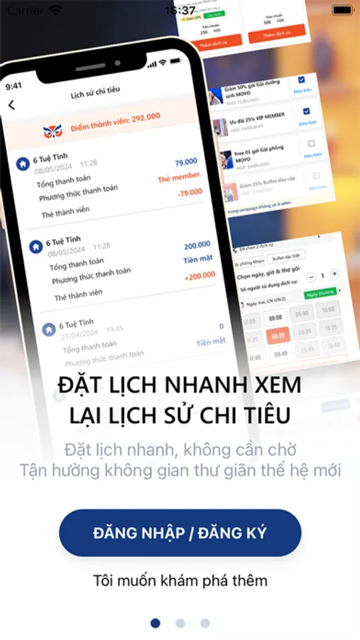+ Theo dõi chi tiết lịch sử chi tiêu, lịch sử thẻ thành viên