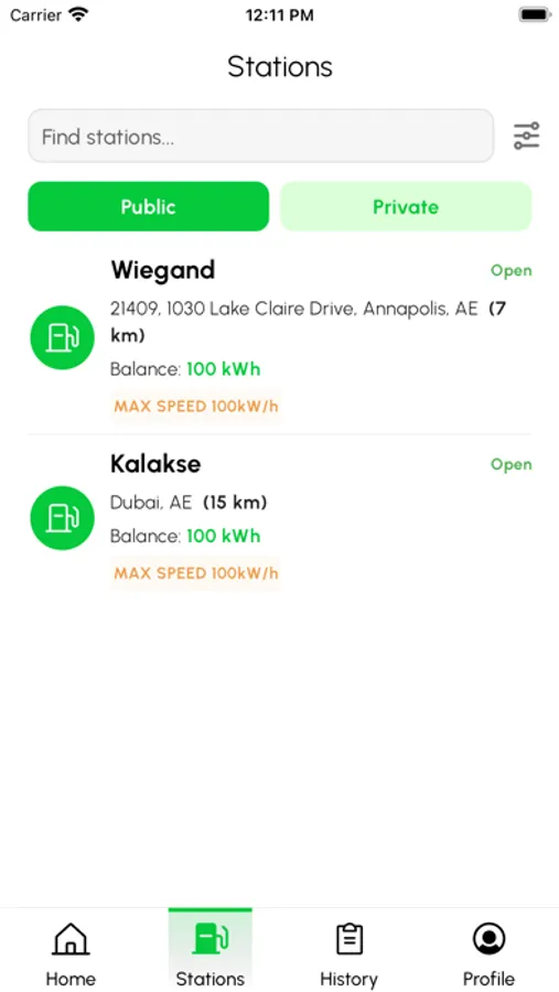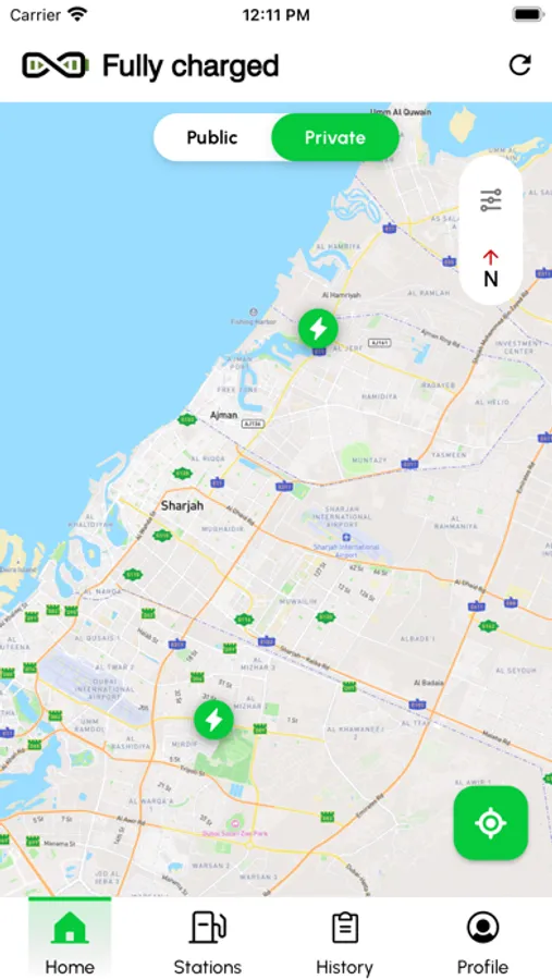 Fully charged application by Fullycharged.ae offers a public EV charging network, including pay-as-you-go schema subscription, and a very intuitive user interface. The network includes chargers from Fully charged and third-party providers. Additionally, it features a private network of EV chargers.