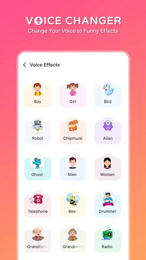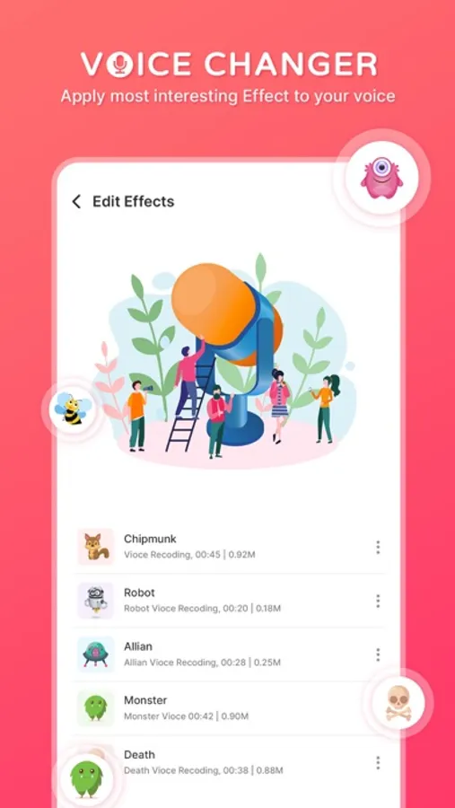 Funny Voice Changer - Free Voice Changer App is a funny voice changer app that can change your voice into different voice effects and sound effects. With its voice avatar and ambient sounds, you can easily change your voice into different effects for free. You can change voice for voice recordings or audio files. You can also change voice for videos to have more fun or share it to social media. It is one of the best voice changes to change voices for free.