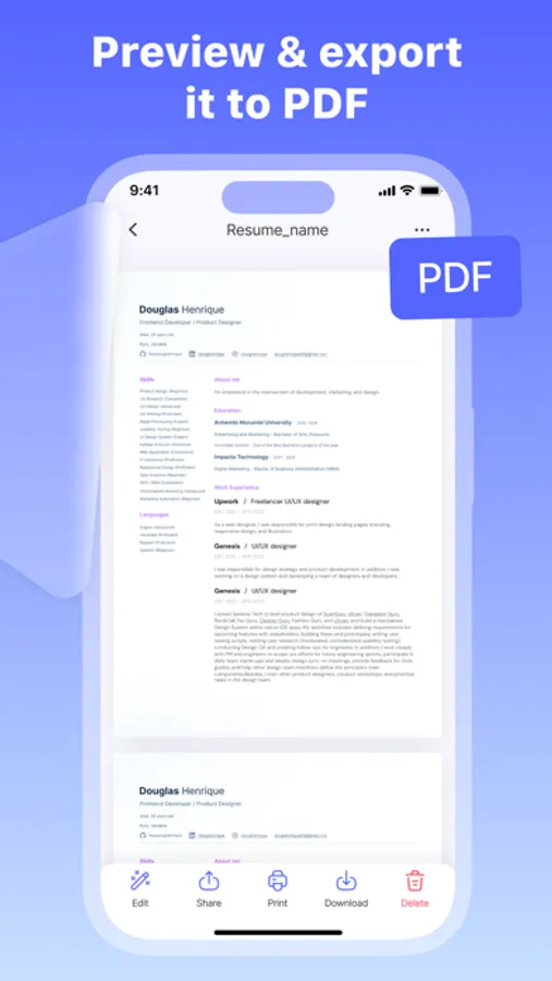 Download now and let AI Resume Builder - CV Maker PDF help you take your career to new heights!