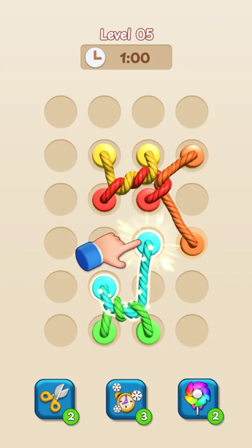 - Tap on the ropes to move and position them correctly, Untwist all the Knot
