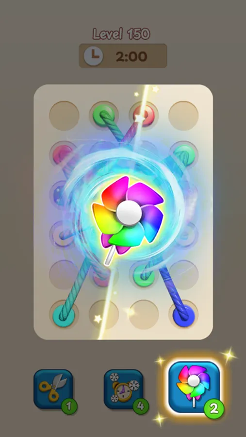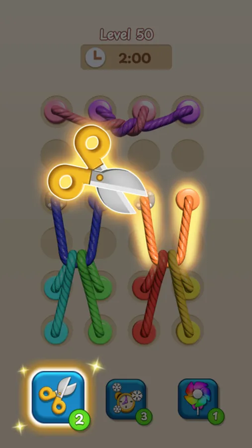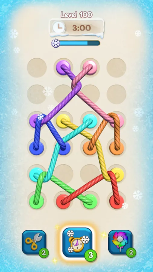 You will pass the level when you untangle all the knots and tap away all the ropes in time within the time limit