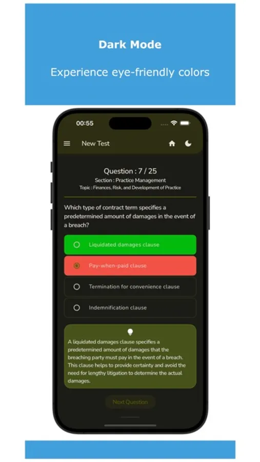 Experience the real test atmosphere with our carefully crafted mock tests, each presenting a random selection of 25 questions. This diverse range covers scenarios, test revision, and practice, allowing you to assess your readiness with confidence. Our AI technology ensures that questions are always up-to-date, reflecting the latest standards in the field.