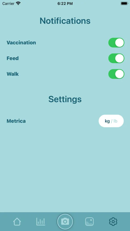 •The bottom navigation bar allows quick access to the home screen, analytics, camera for capturing your dog’s moments, profile, and settings.