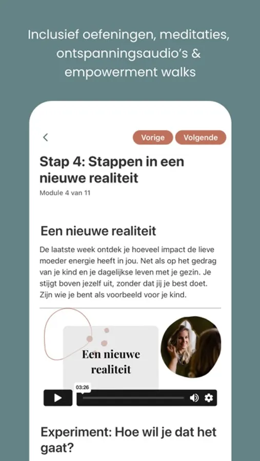Inzichten, inspiratie, manieren en praktische opvoedtools om je de moeder te voelen die je wil zijn. De maandelijkse exclusieve podcast, ontspanning oefeningen, wandel meditaties en q&a's zorgen ervoor dat een diep ontspannen gevoel en meer grip op je kind altijd binnen handbereik is via de app.