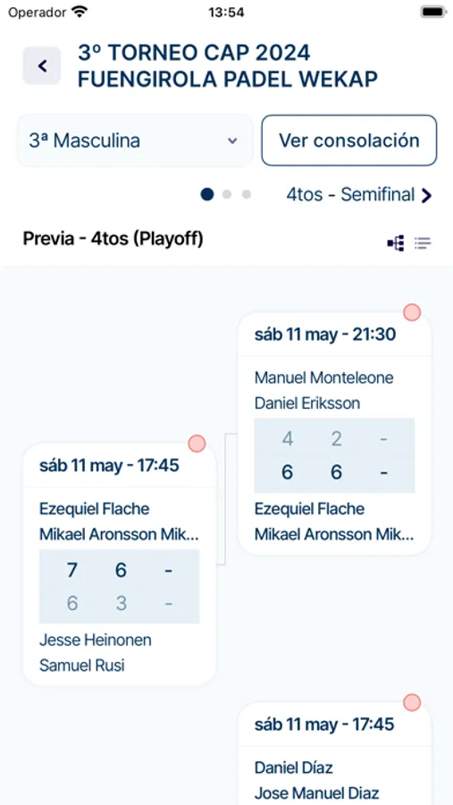 - Consulta en tiempo real de cuadros de juego, horarios, resultados, perfiles de rivales y fotos.