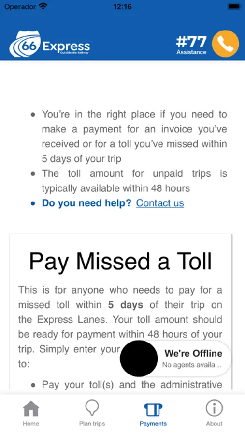 Pay toll invoices or missed tolls on the go