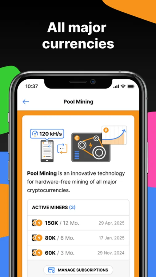 Unlike traditional mining, CT Pool runs at speeds of 100,000,000+ H/s without using your device’s processing power. This means no battery drain or overheating.