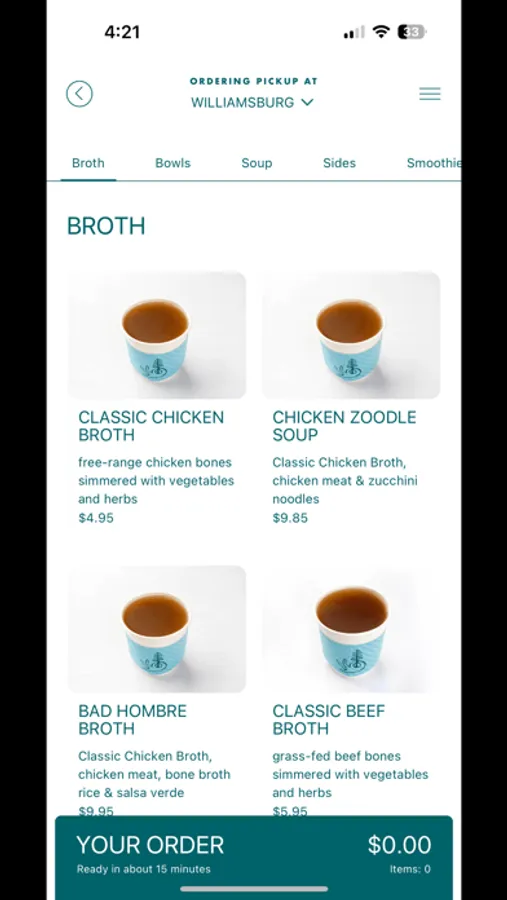 This place is the best!! Huge fan of the broth, the bowls, the smoothies, the soup- it’s all delicious and seed oil free! Also, it seems like the app has been fixed, I didn’t have any of the problems with paying reported in older reviews.