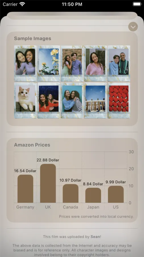 ● Global price comparison (Pro Feature): Get real-time prices of instant films from Amazon stores in multiple countries, ensuring you find the best deals.