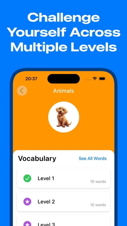▸▸▸ Interactive Games: Challenge yourself with fun vocabulary games including multiple-choice questions and word-matching exercises. Test your knowledge and reinforce learning in an entertaining way.