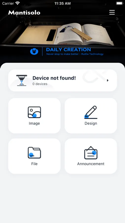 Mantiolo APP is a mobile control terminal running on the iOS operating system. This app can create processing files and control related machinery and equipment.