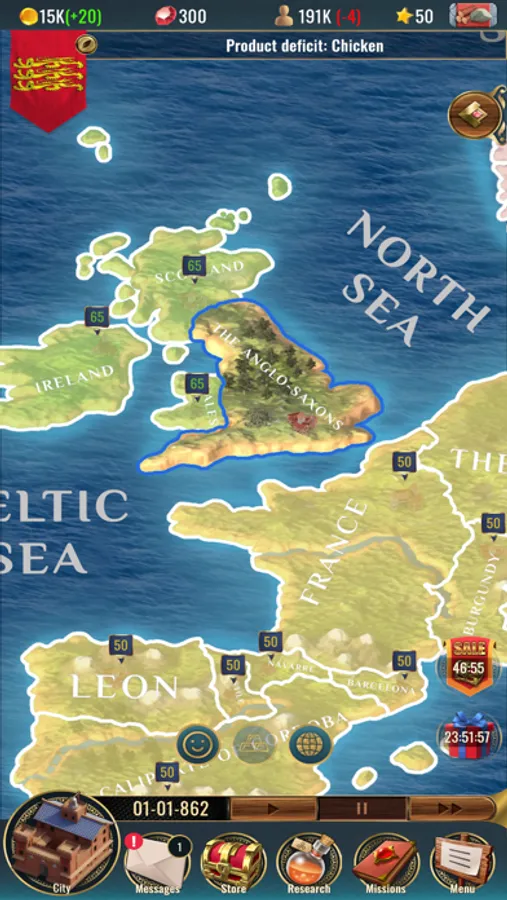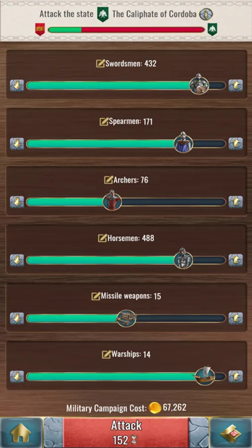 - War and Army – hire numerous medieval warriors, such as horsemen and spearmen. With the right strategy and tactics, seize state after state, establish your control over all countries in the world.