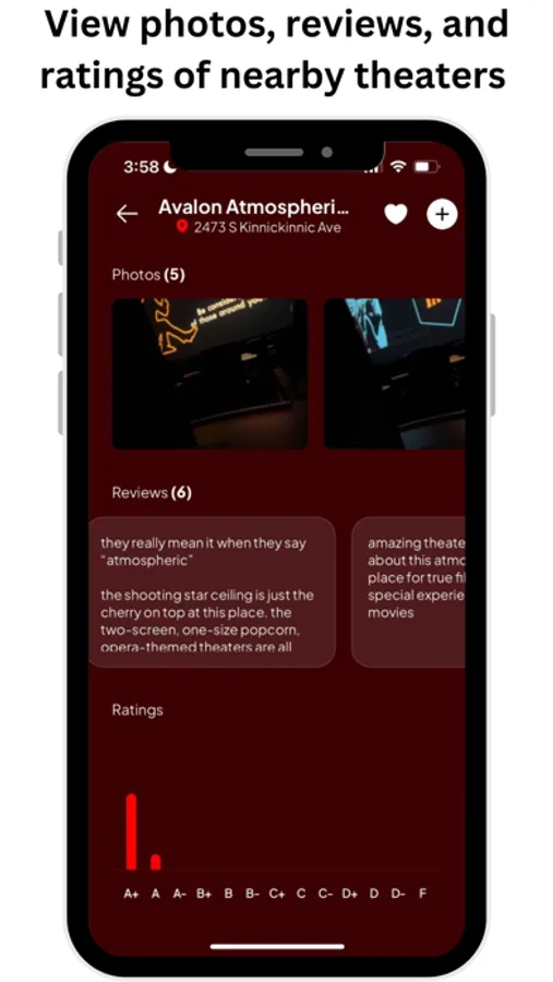 Movies are as good as the experience you have in the theater. In the Theaters tab, users will be presented with the movie theaters that are closest to them. Once you click on a theater, you’ll be presented with photos, reviews, and user-submitted feedback for the establishment.