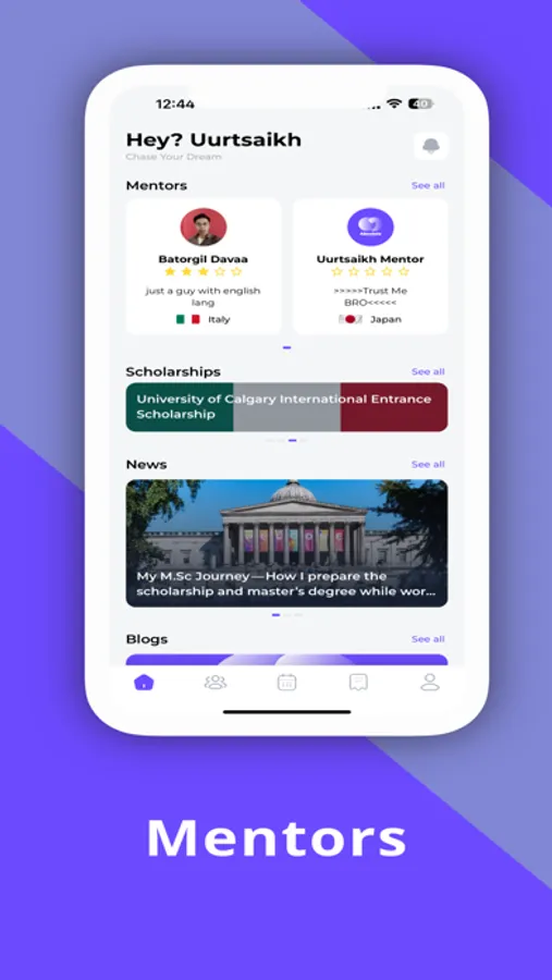 View Mentorship: Students can browse through mentor profiles and can get informations on specific topics, such as scholarships, visas, and admissions. On course you needs to reachout mentor outside app like writing email to mentor. Once email is accepted by mentor you two can start course in app.