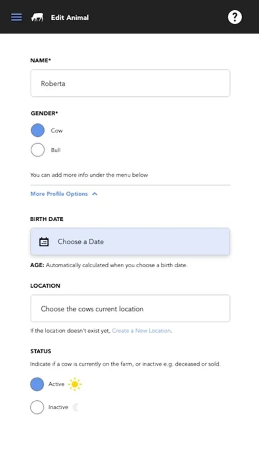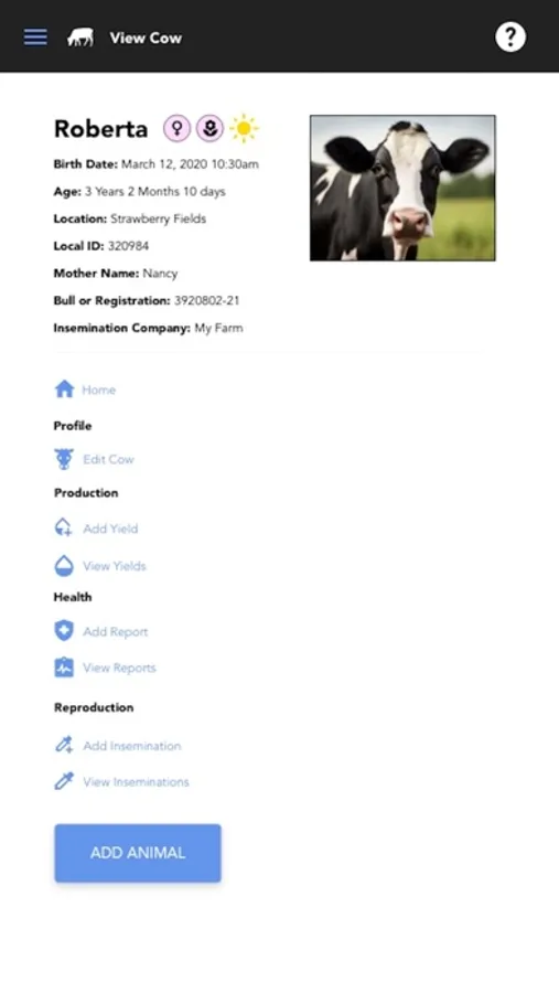 – Animal Profiles with animal name, mother, insemination information, birth date, ID, location, and more