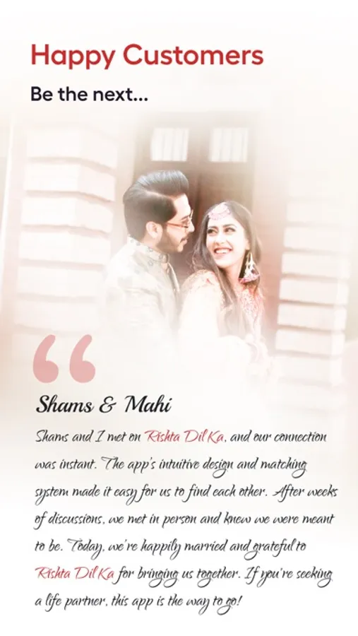 This is a beta version of Rishta Dil Ka, and we're always working to improve. If you encounter any error or bug, kindly let us know. Your feedback is invaluable! Share your experience with us at feedback@rishtadilka.com. As a thank you for your help, you'll get rewarded with extra free connects and paid packages.