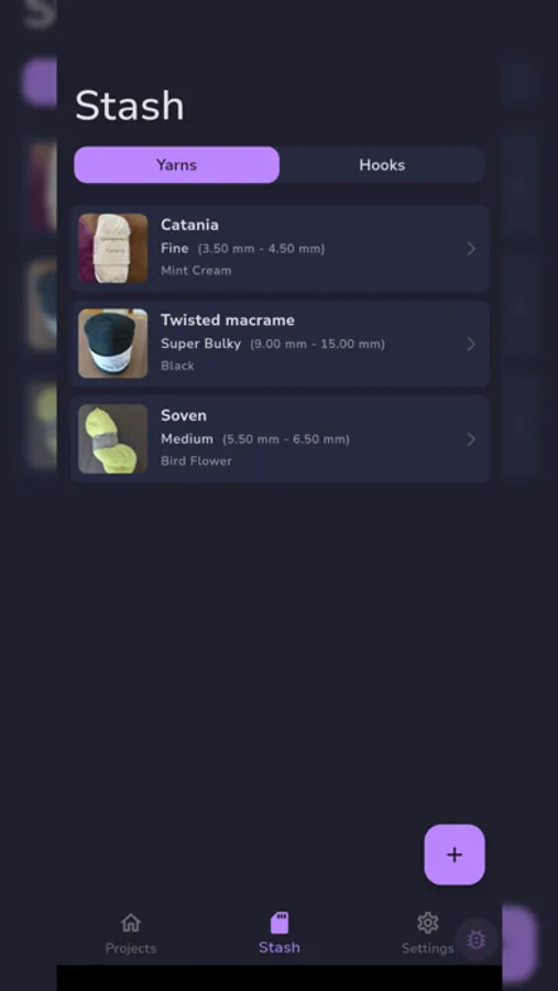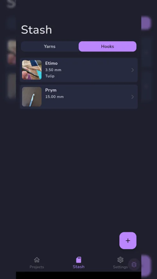 Hook & Yarn Stash: Never get tangled up in your stash again! Track all your hooks and yarns in one place. Add new supplies, update details, and always be ready to craft at a moment’s notice.
