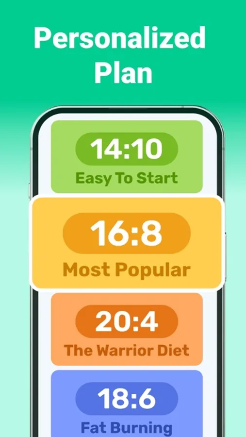 - Popular fasting plans such as 16:8, 20:4, 18:6, 14:10